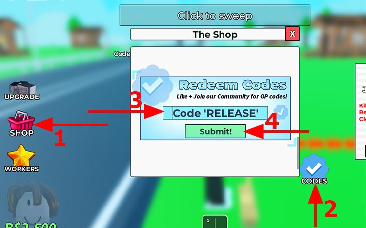 2. Bấm vào SHOP, tiếp tục bấm vào CODES.