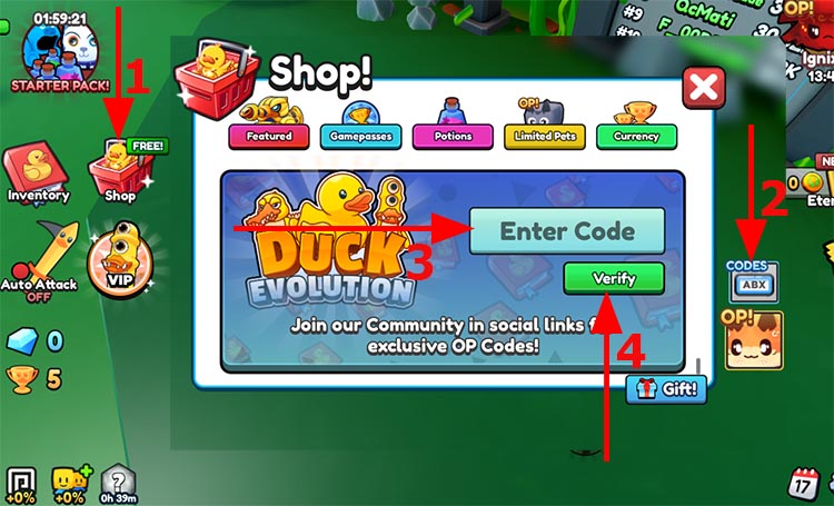 Giống như nhiều trò chơi Roblox khác, việc nhập code Duck Evolution thường rất đơn giản. Dưới đây là cách thực hiện: