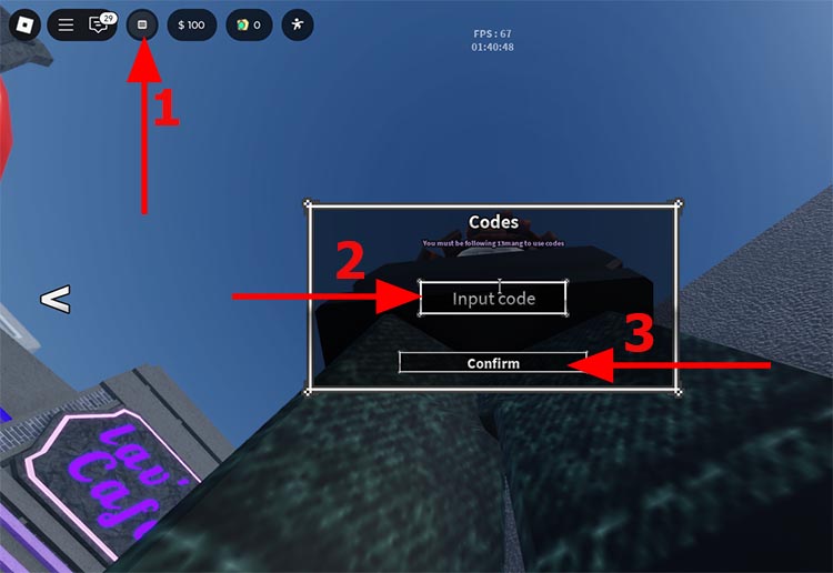 Để nhập mã code trong Heaven Stand và nhận quà xịn, làm theo các bước sau: