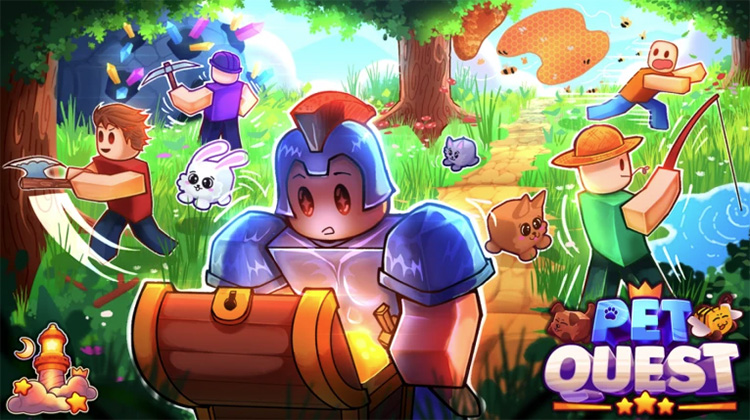 Khám phá Pet Quest Roblox hệ thống pet simulator hay. Hatch thú cưng từ eggs coins farm. Dẫn pet khám phá zones unlock upgrades. Boost potions tiến bộ nhanh. Xây đội quân pet thống trị thử thách.